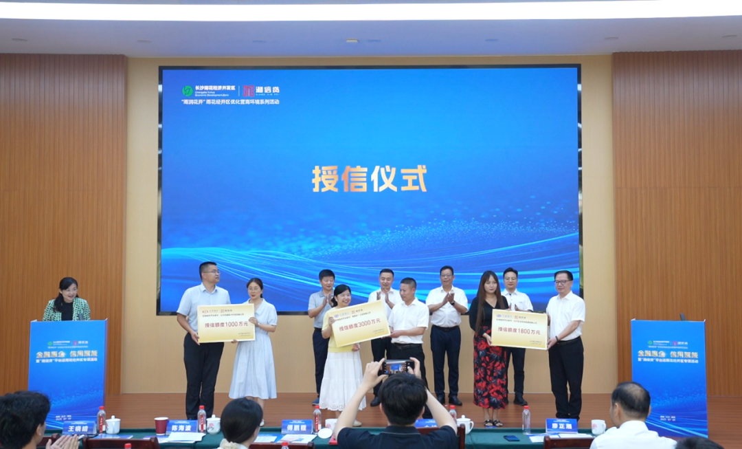 当日,中国银行、农业银行、兴业银行等6家金融机构,为长沙咿呀实业有限公司、湖南普斯赛特光电科技有限公司、长沙文俊机电安装有限公司等7家信用优质企业提供纯信用授信,总额达9300万元。