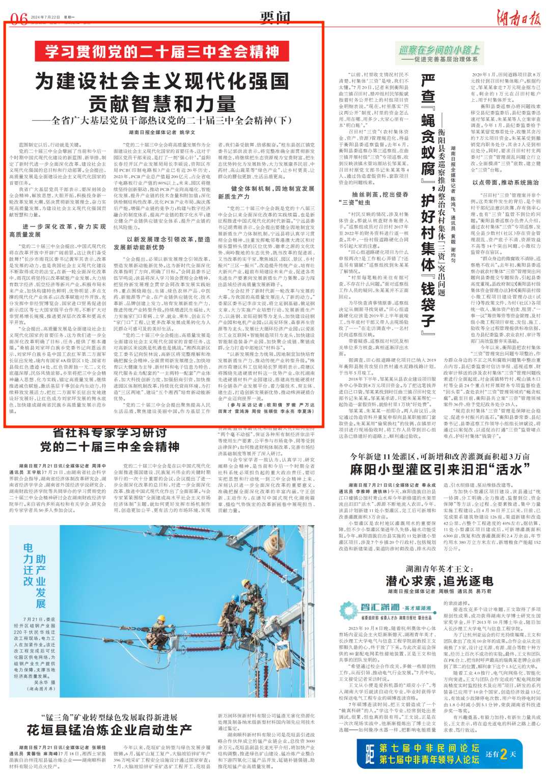“党的二十届三中全会提出,高质量发展是全面建设社会主义现代化国家的首要任务,这对高新区来说既是机遇也是挑战。”湘西高新区党工委书记向恒林说,高新区将完整理解和准确把握全会精神,全面贯彻新发展理念,加快培育以大健康为主导、新材料和电子信息为特色、现代服务业为配套的“一主两特一配套”产业体系,加大科技创新力度,加强招商引资,加快推进园区体制机制改革,持续优化营商环境,为打造“三区两地”、建设“五个湘西”培育新动能新优势。