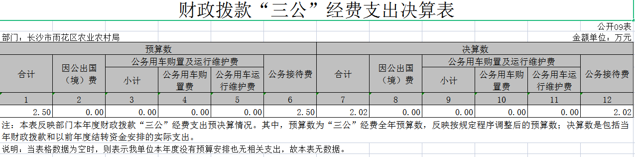 2023年度长沙市雨花区农业农村局“三公”经费支出决算表