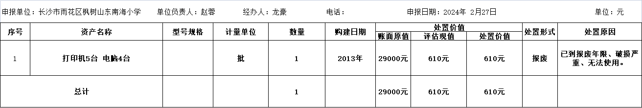 长沙市雨花区教育局区属单位资产处置(核销)公示