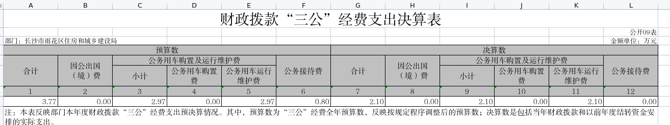 2023年度长沙市雨花区住房和城乡建设局财政拨款“三公”经费支出