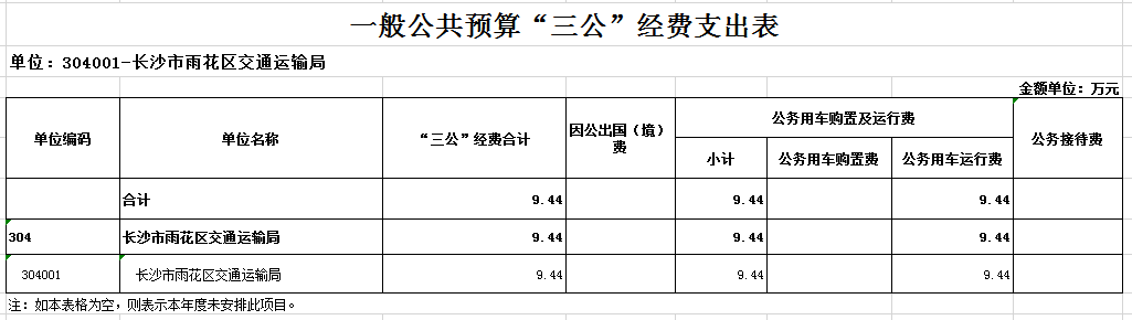 长沙市雨花区交通运输局2025年度“三公”经费预算表
