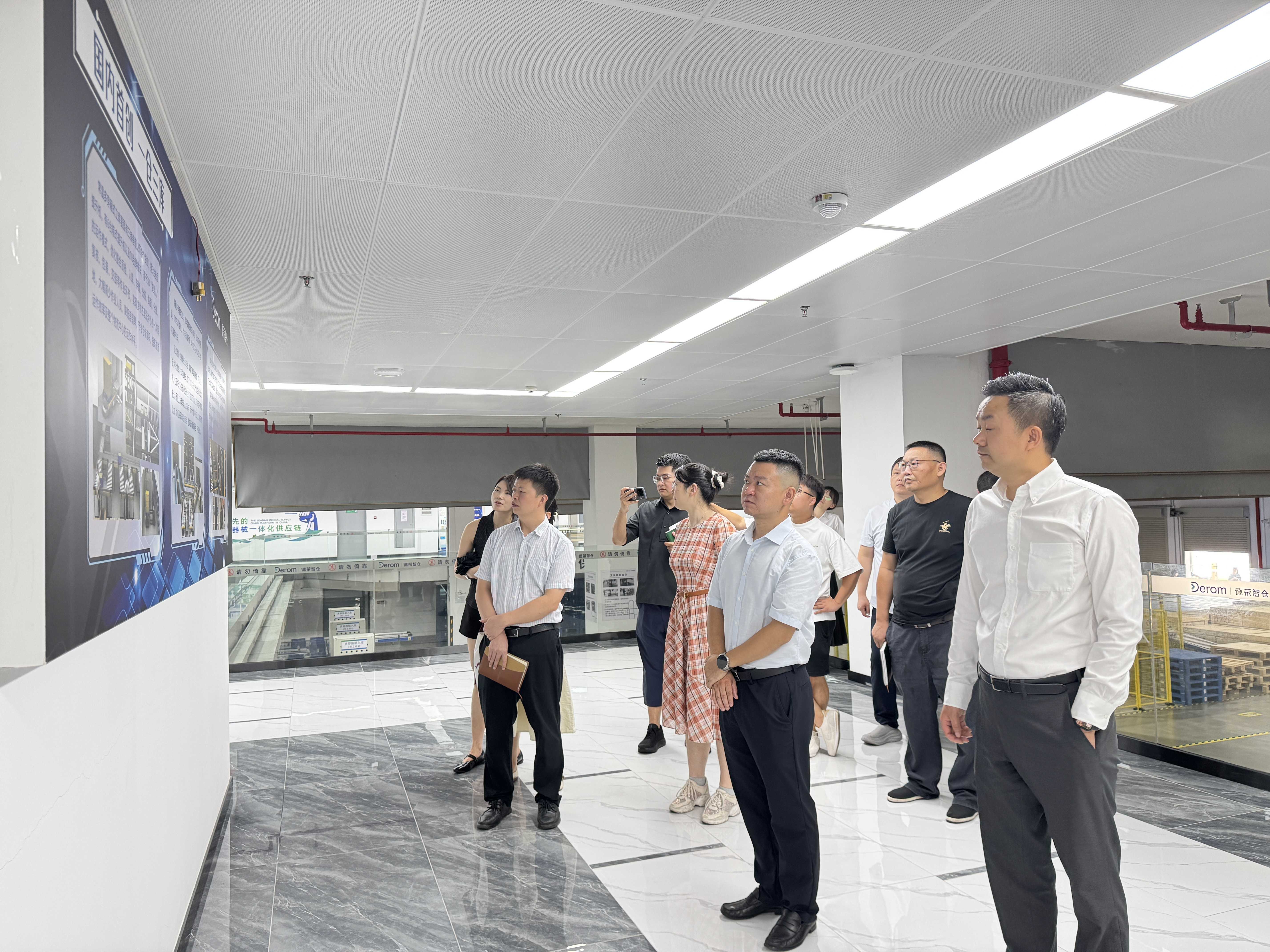 走进德荣医疗科技股份有限公司,考察组深入德荣数智科技馆、院外仓及数据机房等核心区域,通过场景观摩与现场交流,详细了解德荣SPD药品耗材管理服务、医疗设备数字化管理、医药第三方物流、医药配送供应服务等核心业务情况。