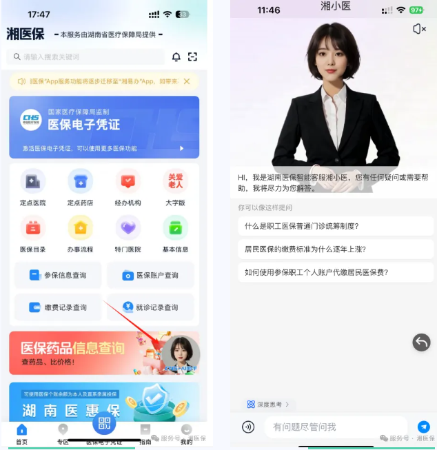湖南医保上线“湘小医”“湘小保”AI数智人!