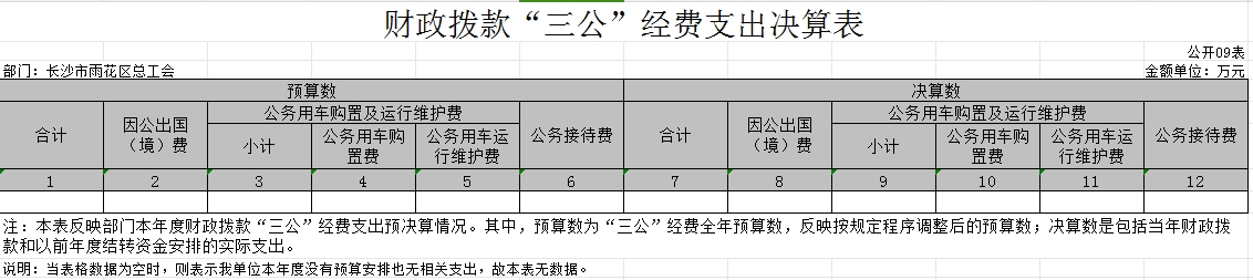 2023年度长沙市雨花区总工会一般公共预算“三公”经费决算表