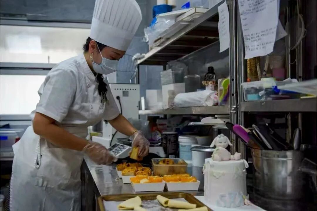 杨雨欣在培训教室专心学习烘焙技术。